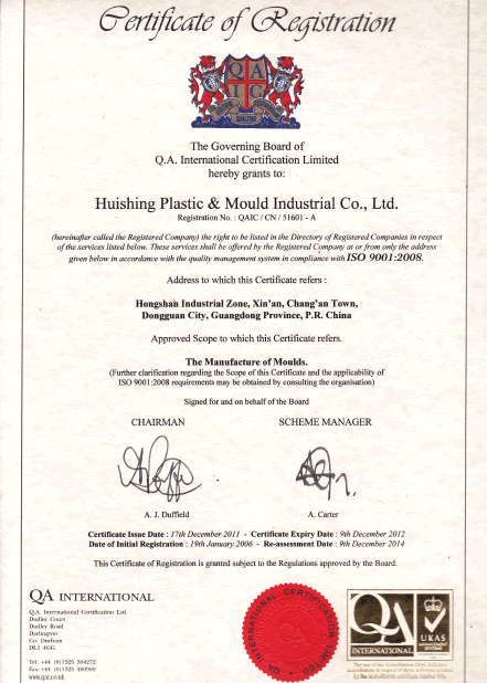 HUI SHING committed to provide the high quality products and high level of service, our ISO 9001 certification is the testimony to our commitment.